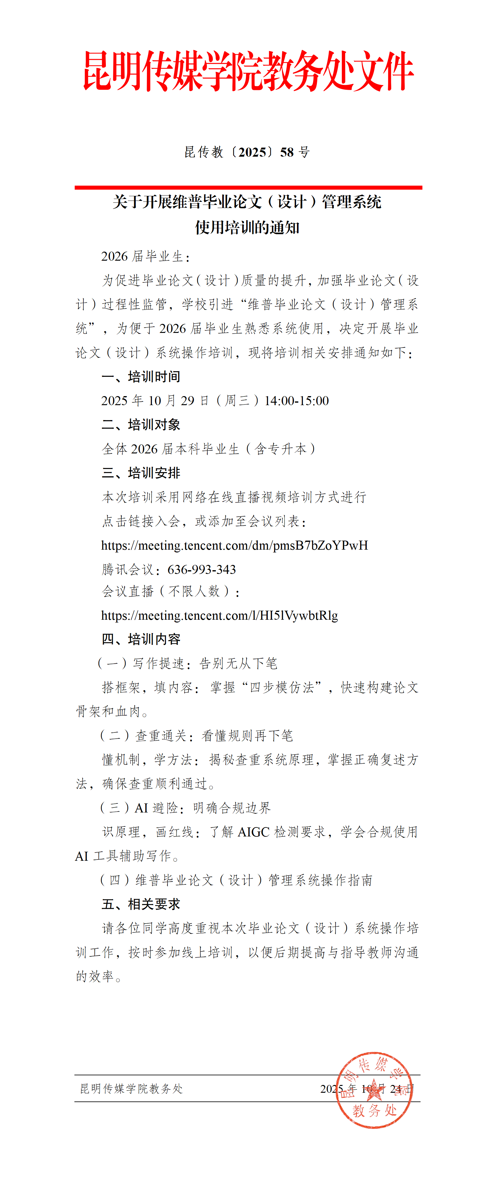 关于开展维普毕业论文(设计)管理系统 使用培训的通知