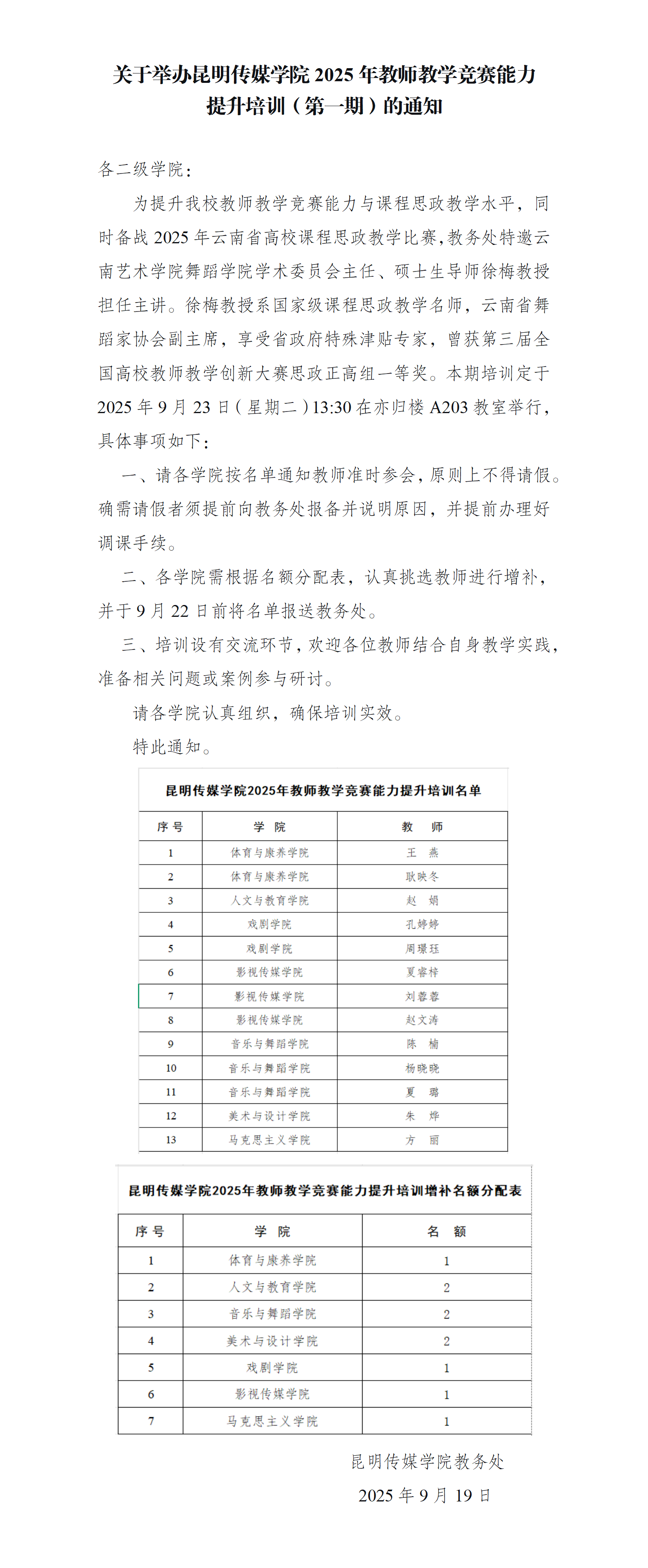 关于举办昆明传媒学院2025年教师教学竞赛能力 提升培训(第一期)的通知